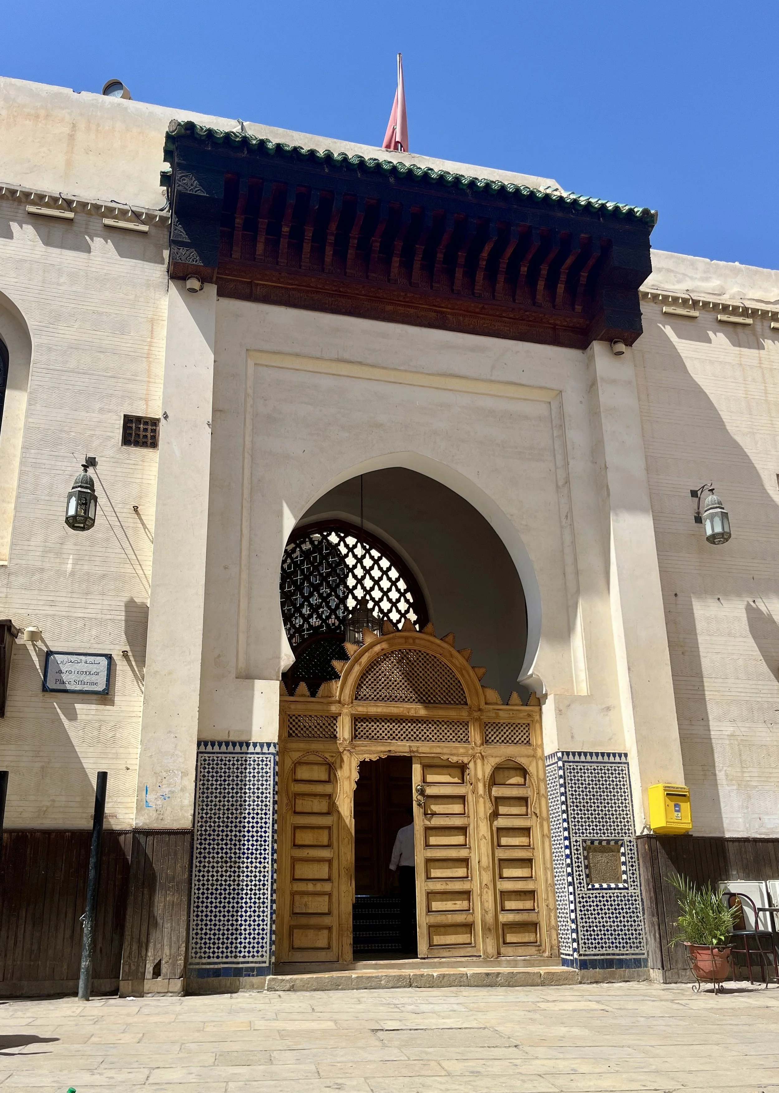 The entrance to the library is on Place Seffarine in the old medina of Fes. The easiest way to get there is to take a cab to Place Rasif, only about a five min. walk from the library. If you’re driving, you can park at Bab Jedid, which is about a 20 min. walk away. Once you reach Place Seffarine, look for a big wooden gate; that’s the entrance.